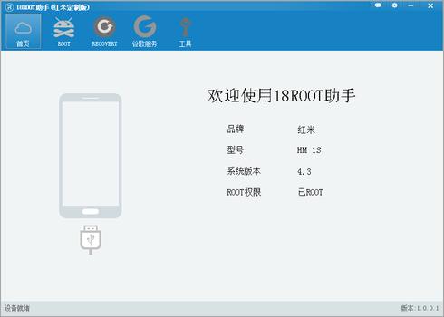 18root助手会智能判断手机型号、智能驱动安装,采用云解决方案,获取ROOT权限的几率大幅提升;完全中文界面,而且傻瓜化设计,适合任何阶段的用户使用;通用性强,能支持2.3~4.4的系统获取root权限;能够支持国产的机型,如红米电信版1S等;反馈问题没有语言障碍,用户可以联系开发者反馈bug或适配新机型。