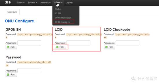 ③配置猫棒的LOID LOID password (如有),点击相应的run