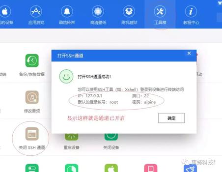 找到工具箱-打开SSH通道,如图