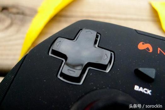不过从正面还是可以看出明显得新游手柄的影子,那就是摇杆底部采用了新游手柄特有的桔黄色。非常醒目。M100手柄表面并没有采用以往的塑料材质加纹路处理,而是采用了非常少见的类肤的磨砂材质,这应该是智能游戏手柄上第一次采用此种设计。这样设计的好处是手感极其出色,即使手掌出汗也不会发滑。四球定位式十字键定位准确,灵敏度高。表面内凹式设计,弧度正好包容手指,使用感觉非常舒适。