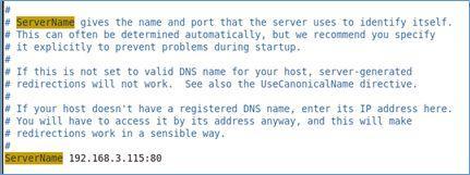 修改 /etc/httpd/conf/httpd.conf 文件,将ServerName修改为本机IP。
