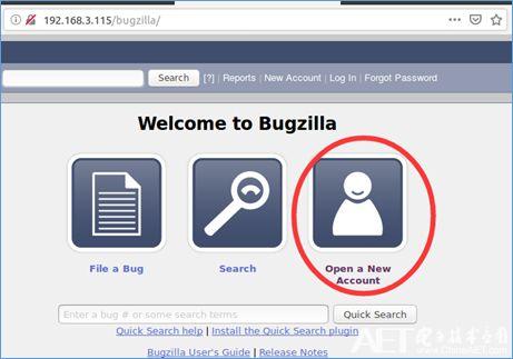 在局域网其他主机上,登录bugzilla。选择open a new account。
