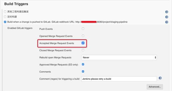 5.3.2 Build Triggers 区域勾选 GitLab 插件配置如图所示: