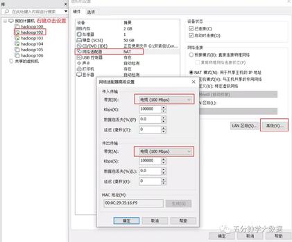 HDFS 的读写性能主要受网络和磁盘影响比较大。为了方便测试,将 hadoop102、hadoop103、 hadoop104 虚拟机网络都设置为 100mbps。