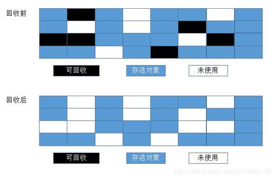 它其实跟标记-清除算法原理差不多。区别在于,它在清除前做了一个处理——将所有存活对象统一向一端移动,然后直接清除边界以外的内存空间。