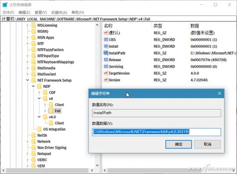 如果要了解.NET Framework程序的安装位置,双击InstallPath字符串项,即可看到详尽的路径(图2)。