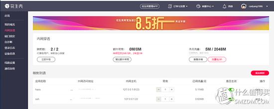 左侧找到内网穿透,添加映射,这里只能添加两个映射,我添加了SSH和hass,本地的IP地址是127.0.0.1。设置好以后就可以用了。