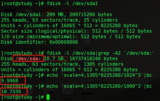 [root@study ~]# awk ’BEGIN{print 1305*8225280/1000^3}’