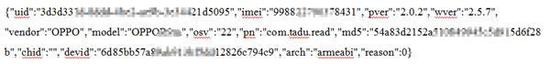 请求数据:包括uid、imei、sdk版本、手机厂商、型号、系统版本、应用包名、设备id、设备指令集等内容
