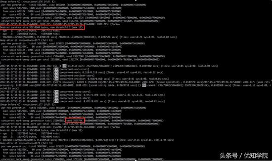 通过上图GC日志中两处红色框标记内容可知: