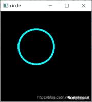 输出结果如图所示,它在圆形为(100,100)的位置,绘制了一个半径为50,颜色为(255,255,0)、粗细为4的圆。