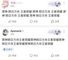 我的同事三明老师整个账号中仅有3条动态,其中一条是转发的关于《原神》的抽奖,轻而易举地斩获了“原批”和“抽奖”两项桂冠;而我的一些网友已经功利地在动态刷关键词,实现了“双排上分”的盛景。