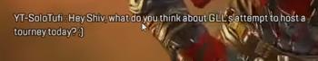 其中一位职业选手 Shiv 在直播的时候却收到了 Tufi 发来的一条私聊( 游戏里没有私聊功能,但他却能私聊别人 ),问 Shiv 怎么看待 GLL 比赛开不了的问题,还带了个笑脸。