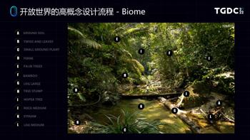 这里跟大家分享一个如何细分以及分类的方法。还是以丛林为例:在 Key reference中标注出最重要的生态元素,记录并分类。这样的分类对于 生产非常重要,不仅能为制作生态资产的同学带来便利,也能让我自己在分类的过程中,更清楚地认识到自己想做些什么,并整理出优先级。