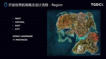 以《孤岛惊魂6》为例,我们把世界划分为4个区域:西部肥沃的土地、中区的乐园、东部雄伟的山峰,以及系列第一次出现的城市。同时为了真实的体验,我们甚至把全岛分为11个行政区。玩家在探索每一个区域时,都会发现构成这个世界的独特地形地质、生态环境、文化特征,甚至是不同的野生动物。