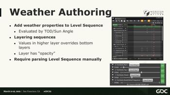 Gameplay逻辑最终看到的就是这些预设,如果Gameplay要求改变天气,系统就只是在这些不透明度值之间过渡。