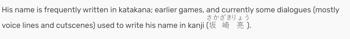 坂崎亮,在最初的设定中是有中文名字的,而且在他的腰带和衣服背后有一个大大的“亮”字,也就是说坂崎亮才是真正意义上的官方名字。