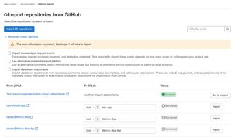 现在可以从发行说明和评论中导入GitHub 项目镜像资源和其他附件类型。附件被添加到 GitLab 并且它们的链接被更新到新的GitLab URL。