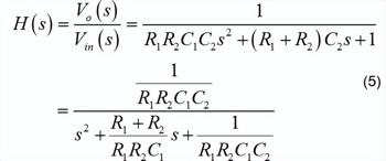 将 (4)代入(1)经过化简可以得到滤波器输入输出之间的传递函数