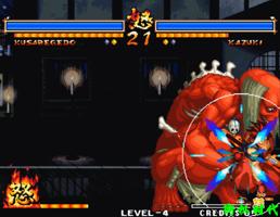 游戏中最变态的人物还得是不知火幻庵,他的投技伤害威力是整个系列中最强的。有意思的是,你用AB抓人只能打一点血,但是用B抓人就能打一小半。