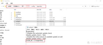 进入如下图所示地址,用记事本工具打开“config.ini”文件,在最下方新增一行“install_dir = 目标路径“,目标路径可以定义;我这里是在d盘新建了个legendary的文件夹,所以填了如下内容。