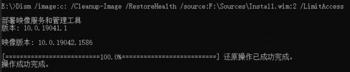 千万看准,image参数指定的是修复目标系统所在c盘,如果你的系统在d盘,应更改为/image:d:。/source的值,指定的是2,也就是前面我们看到win10企业版在wim文件中的索引号。稍微等一会儿,我们应该看到下面的结果。