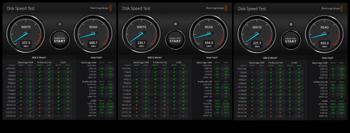 同样是采用不同连接方式进行测速对比,这会表现比较符合常识,Macbook c口直插的速度要高于扩展方式的测速,但是实际扩展的速度并没有低多少,差距基本可以忽略不计。