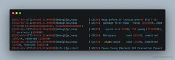 查看 GC 日志,Heap before GC invocations 与输出堆结构的日志间隔了很久:
