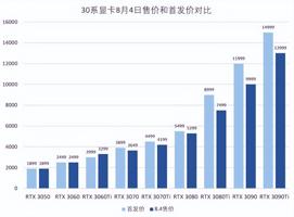但最近几个月,显卡价格却来了一波空中飞人,30 系显卡中绝大部分都跌破了首发价。