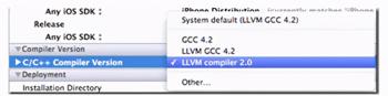 从XCODE4开始,也就是 Mac OS X 10.6版本系统上,Apple 宣布停止更新GCC编译器,这样GCC停留在GCC4.2版本,并建议大家使用LLVM Compiler 2.0(LLVM-Clang),该版本完全支持C++/ Objective-C++,并提供libc++库来支持新的C++ standard(C++0x标准),而GCC/LLVM-GCC支持的是GCC标准库libstdc++;