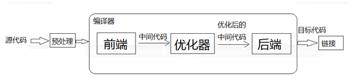 从源代码到可执行程序一般经过预处理、编译、链接过程,而编译是编译器的工作,编译分为三个阶段,分别为前端、优化器、后端。