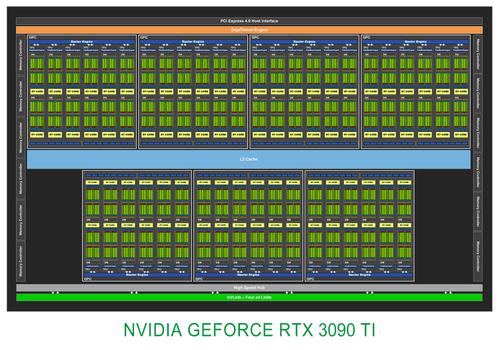 从规格表上来看,完整GA102核心RTX 3090 Ti有着更高的规格,相比RTX 3090补全2组SM单元,达到了 10752个CUDA流处理器、84个RT Cores、336个Tensors Cores、以及112个光栅化处理单元。从理论上来看,RTX 3090 Ti有着更为出色的性能表现,但核心的小幅差距的确是很难与RTX 3090拿开明显的差距,我们再来看看,此次RTX 3090 Ti还有什么方向的加强。
