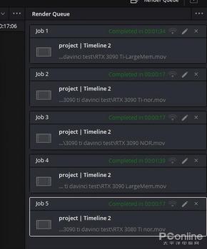同样8K RAW Video播放,显存占用就已经达到了24GB,还真是有点夸张,当然此时更换其它低容量版本的显卡会直接报错,停止运行的处理。那这样设置后,RTX 3090 Ti是否有优势呢?我们同样拿此项目文件直接进行视频导出,对比导出时间。