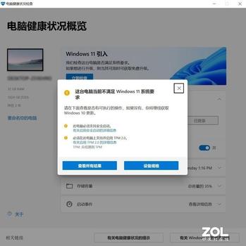 笔者另外一台电脑并不满足升级要求,所以会弹出如下图所示对话框: