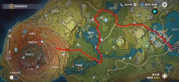 然后是大家的老朋友原神,单独交代一下测试路线,测试路线固定,如图所示游戏时间统一调为 19:00 整由璃月港南部锚点向北出发,经过北部锚点后沿天衡山北侧官道一路向西北前进,途径遁玉陵、灵矩关和青墟浦,最后抵达层岩巨渊上层,路上有怪打怪,有矿挖矿,不进行地图传送或打开设置菜单等影响瞬时帧数的操作。游戏画质设置为全最高,关闭动态模糊,帧数改为 60 帧。