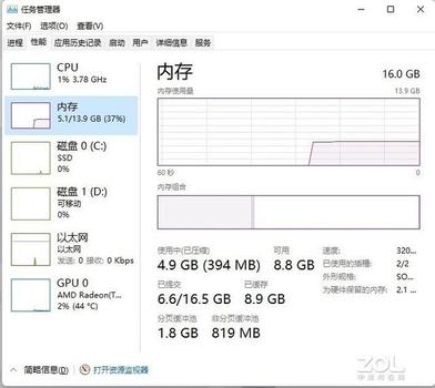 其余硬件上,这台主机以已经装载了双8GB普条内存,500GB的固态,还有 AX210 Wi-Fi 6E无线网卡。