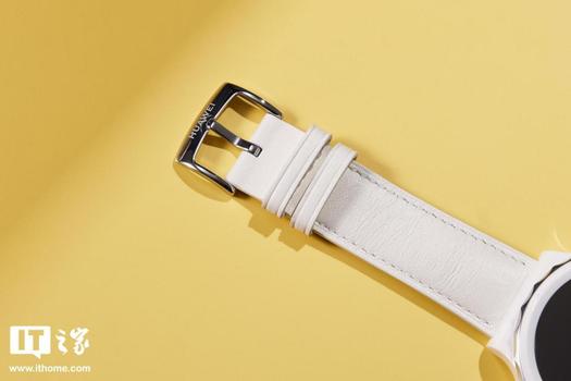 华为 WATCH GT 3 Pro 陶瓷款提供了白色真皮表带(也有陶瓷表带可选),据官方资料,其采用了欧洲高级头层小牛皮,有精致自然的天然纹理。