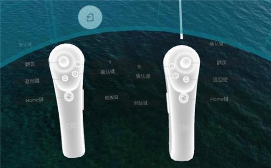 当你把手柄放到眼前,屏幕上也会出现虚拟的手柄,并且标示着每一枚按键的名称和功能。