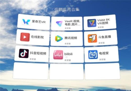 Pico Neo 2内置的视频应用,包括爱奇艺VR、腾讯视频、斗鱼直播、抖音短视频、哔哩哔哩、电视家等等。
