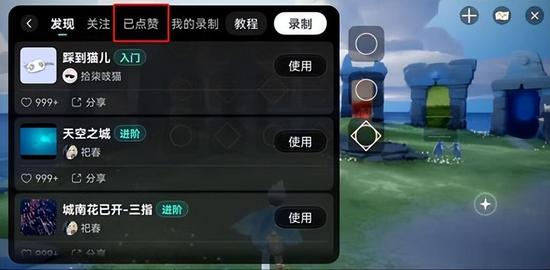 2、点赞,在“发现”或者弹奏他人内容时,点击“点赞”,则之后可在列表中的“已点赞”找到该内容
