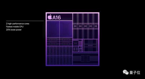 A16芯片,拥有160亿个晶体管,4nm工艺,6核CPU,性能表现上比竞争对手快40%。