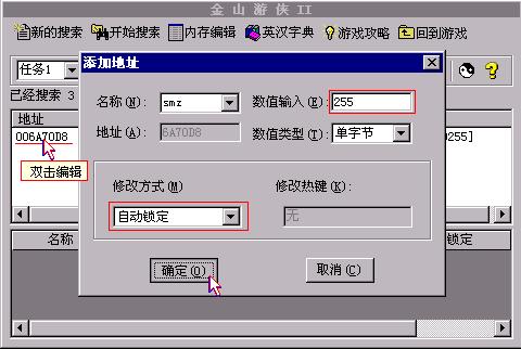 于是笔者直奔小卖部(当初游戏盘以及外设之类的都是从小区里的小卖部购买的),再简单询问了一下老板之后,老板推荐给了笔者一款软件:金山游侠。这个软件在当时远比“金手指”强悍,再也不需要输入一段代码然后进行修改了,只需要简单的将你要改的内容在金山游侠中搜索一下,然后再改动一下这个数字,再进行搜索,反复几次后可以修改的选项就只剩下1~3个了,然后直接修改成你想要的数字便可以了。简单方便,而且十分全能。